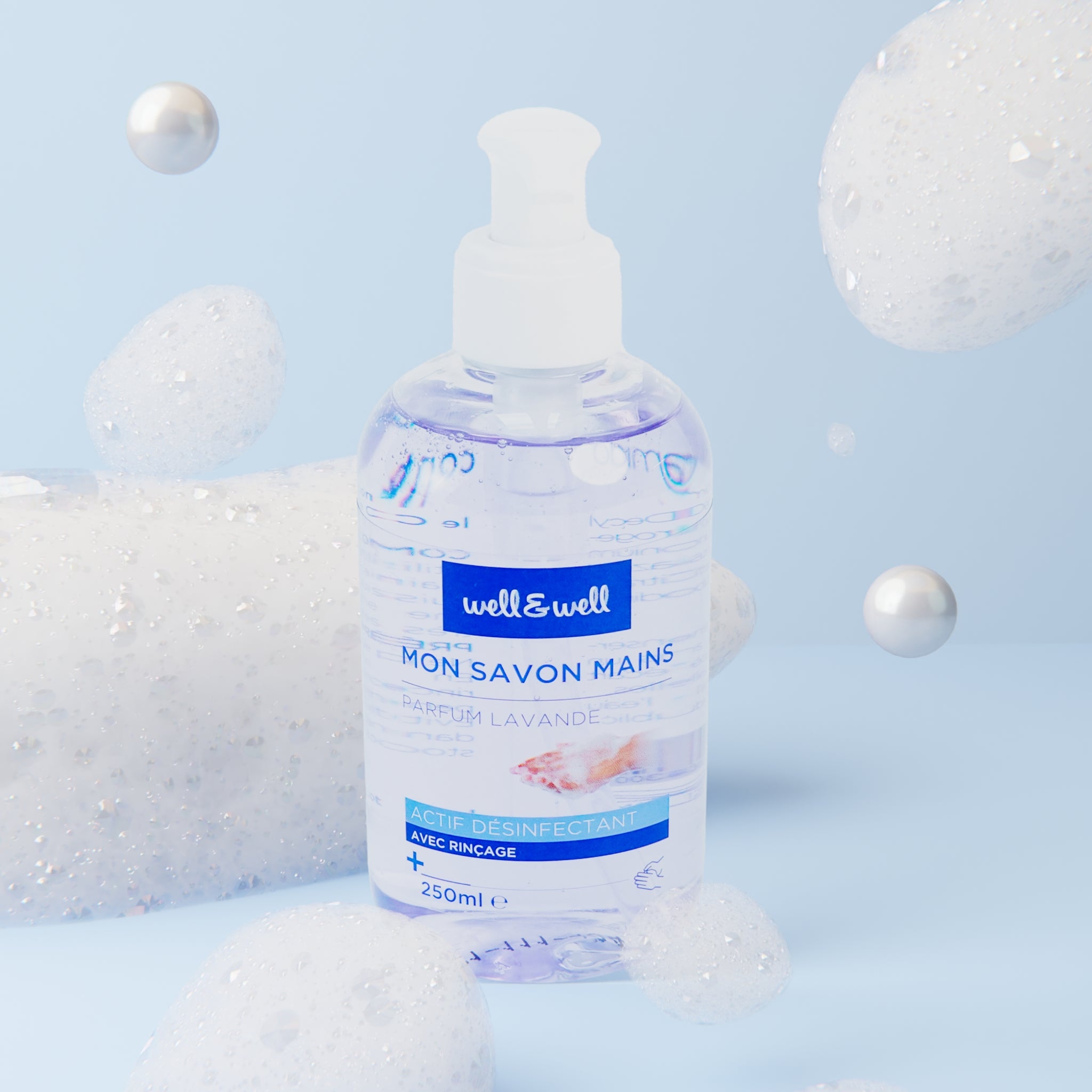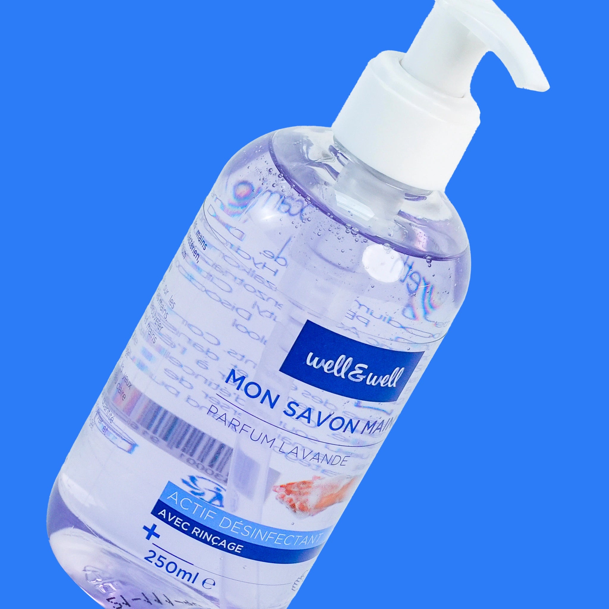 Savon Liquide pour les mains contenant un actif antibactérien (le Chlorure de benzalkonium).