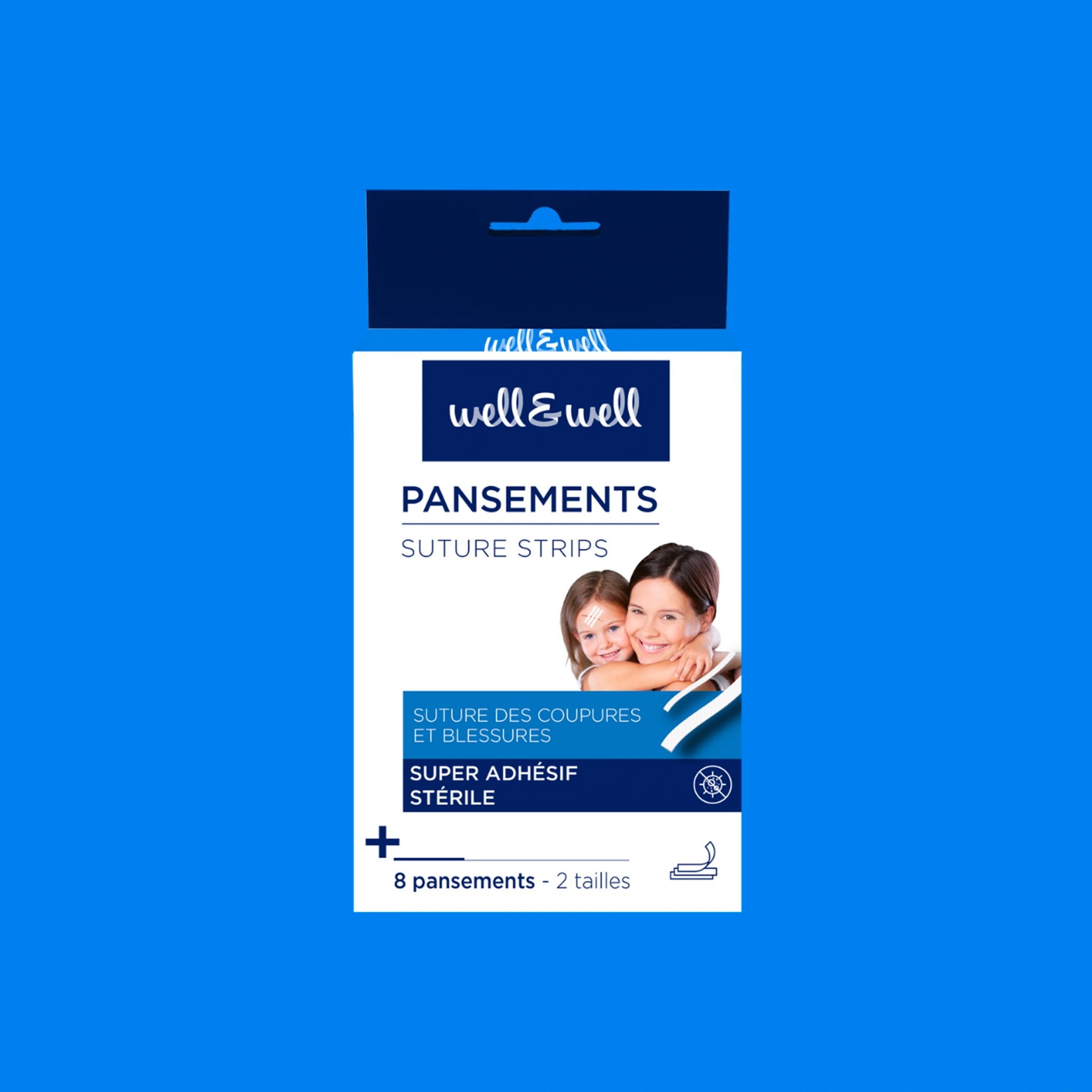 8 pansements sutures dont 5 de 3x75mm et 3 de 6,4x80mm.